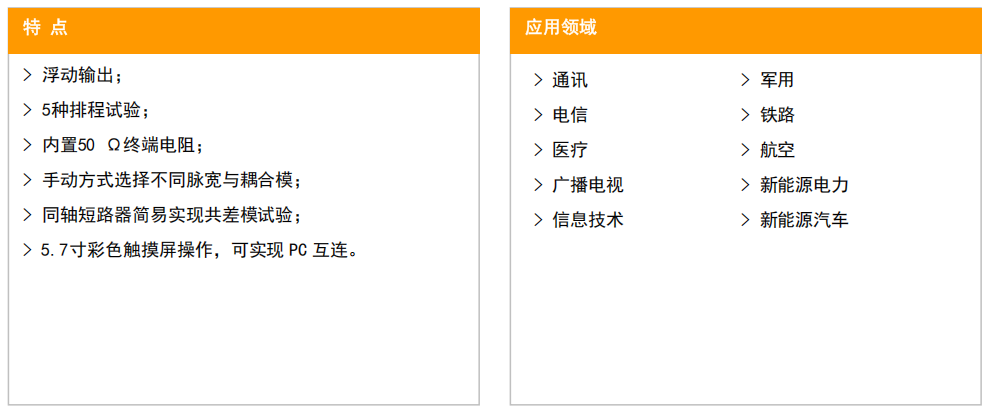 | 输出电压 | 0.1 kV ~ 4 kV±10%, 内置 50 Ω终端负载 |