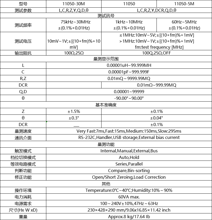 测试参数:L/C/R/Z/Y/DCR/Q/D/ 日