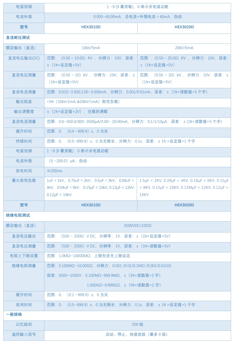 三合一功能:交流耐压、直流耐压、绝缘电阻、电弧侦测、开短路侦测;