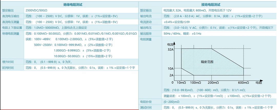 量程大 耐压容量标配500VA,绝缘量程可达50GΩ