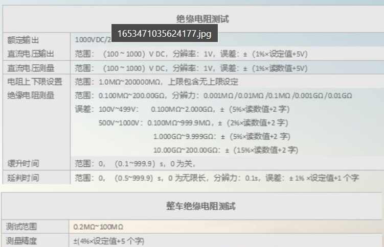 绝缘电阻范围:200G2,可扩展至1000G2;