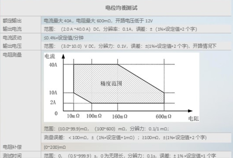 耐压输出容量200VA、500VA,电位均衡输出电流范围至直流40A;