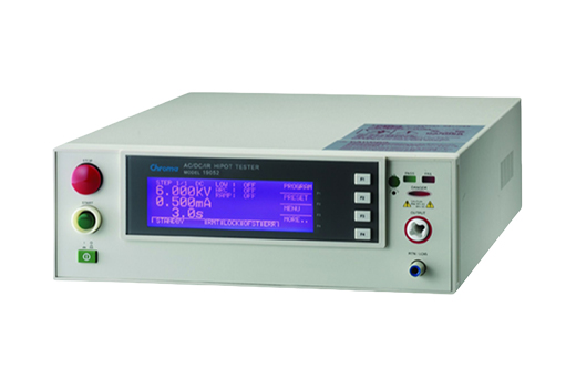 Chroma 19050 系列耐压测试器运用高精度的数字硬件架构,将电压与负载变动补偿相结合,以此确保测试的完整性。其多步功能支持使用者在一个程序中执行多个测试步骤,比如先进行交流耐压测试,接着进行绝缘电阻(IR)等多个工步测试。