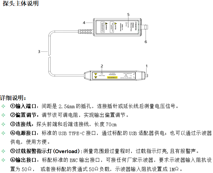 DP6020A、DP6040A和DP6060A探头是具有浮地测量功能的低压差分探头。测量电压分别±20V(DC+Pk)、±40V(DC+Pk)和±60V(DC+Pk),其带宽高达800MHz,提供 10:1 、20:1和50:1的衰减设置,具有 200KΩ和400KΩ 的输入阻抗,以及 1 pF和0.5pF 的低输入电容,可以更大程度地降低电路负载;具有过压报警功能,可以兼容任何具有 50 Ω BNC 输入的示波器,并可以通过示波器或计算机上的 USB 端口供电。