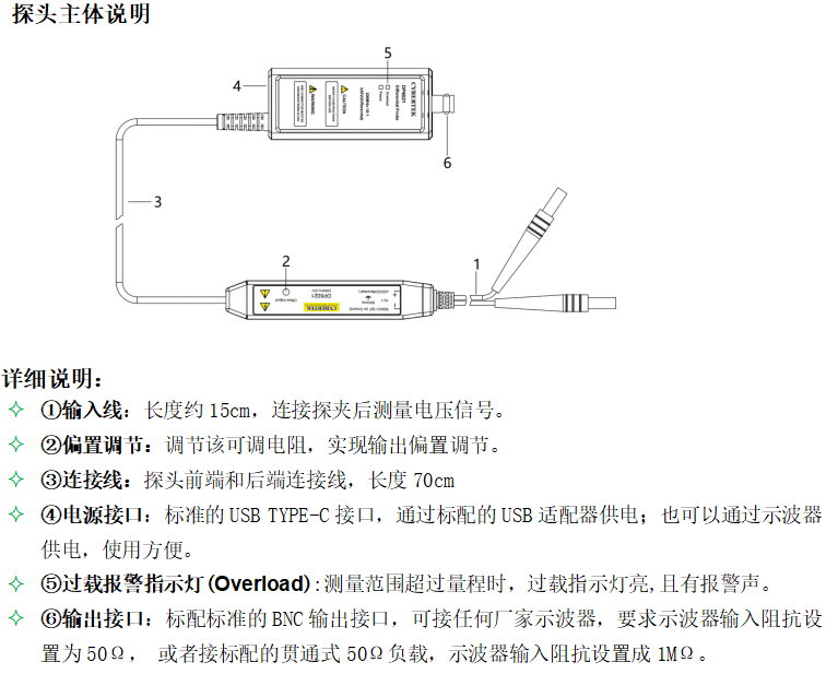 DP6021探头是具有浮地测量功能的高频低压差分探头。测量电压±20V(DC+Pk),其带宽更高达200MHz,提供 10:1 的衰减设置,具有 1 MΩ 的输入阻抗,以及 3.5 pF 的低输入电容,可以更大程度地降低电路负载,具有过压报警功能,可以兼容任何具有 50 Ω BNC 输入的示波器,并可以通过示波器或计算机上的 USB 端口供电。