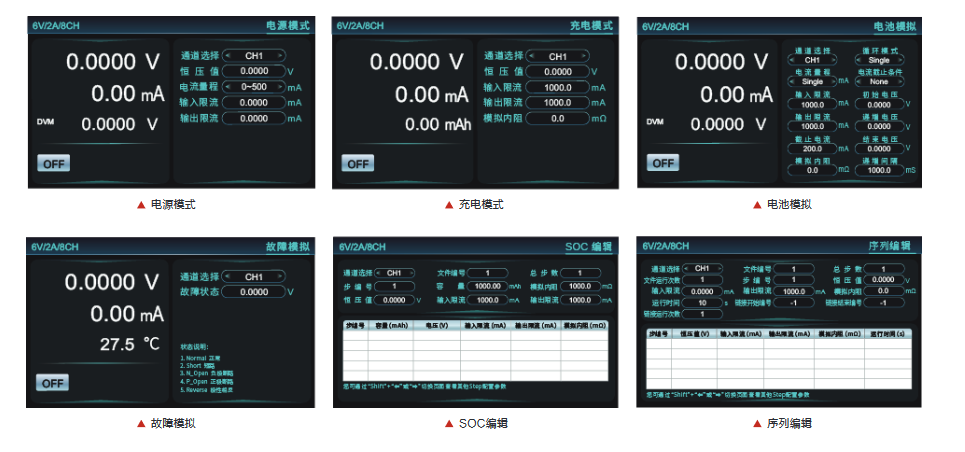 支持电池模拟、内阻模拟、SOC模拟、故障模拟等功能