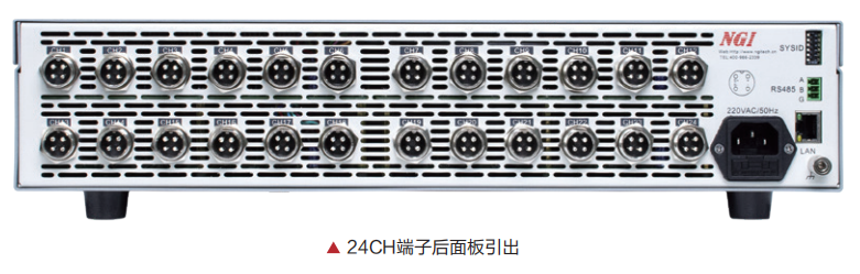 N8330系列采用标准19寸2U机箱,单机容纳多达24CH,通道间相互隔离,一台设备可以同时测试24个工位,极大减少用户测试过程中设备的使用量,提高测试效率。