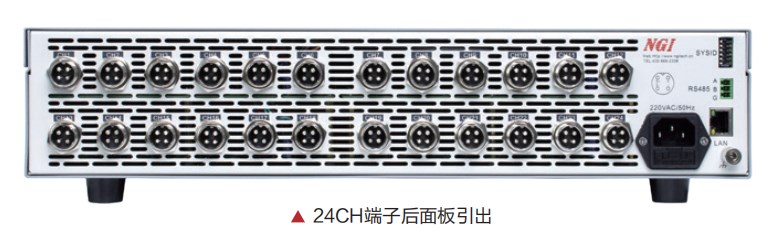 N8331系列采用标准19英寸2U机箱,单机容纳多达24CH,通道间相互隔离,一台设备可以同时测试24个工位,极大减少用户测试过程中设备的使用量,提高测试效率。