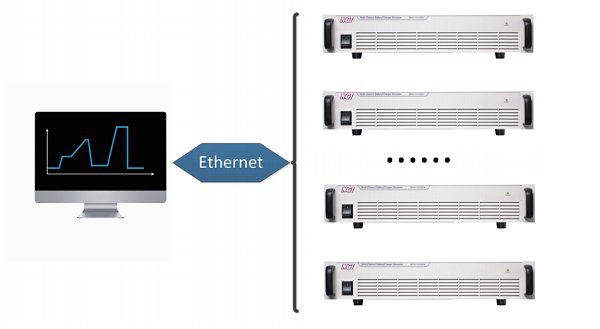 当需要多串电池芯时,可多台电池模拟器多通道串联使用,使用者亦可透过Ethernet标准界面进行远端控制及其他自动测试应用。