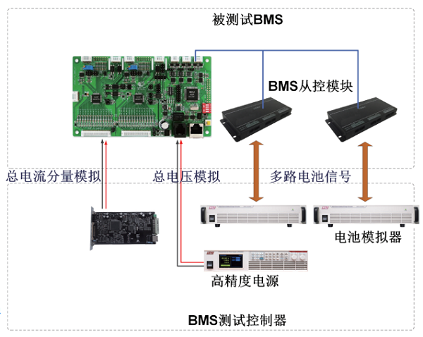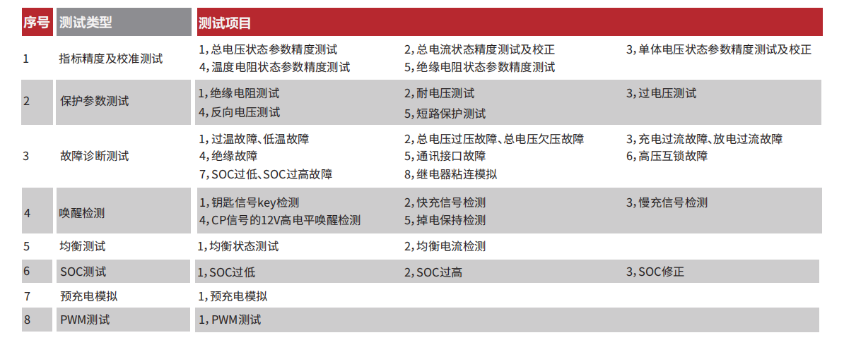 电池管理系统( Battery Management System,BMS)是用来对蓄电池组进行安全监控及有效管理,提高蓄电池使用效率的装置。对于电动车辆而言,通过该系统对电池组充放电的有效控制,可以达到增加续驶里程,延长使用寿命,降低运行成本的目的,并保证动力电池组应用的安全性和可靠性。动力电池管理系统已经成为电动汽车不可缺少的核心部件之一。为了保证BMS能正常工作,需要对BMS做全面的测试。