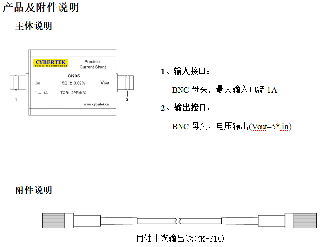 CK05精密电阻分流器是为了本公司CTA系列高精度互感器产品而设计。采用目前世界高水准精密箔电阻,实现电流到电压的输出转换。标配5Ω阻值,更大输入电流达到1A,标准的BNC输入输出接口,具有高精度(0.02%),低温漂(2PPM/°C)特点,的长期负载下阻值的稳定性。可以实现高精度和高稳定的电流电压转换。