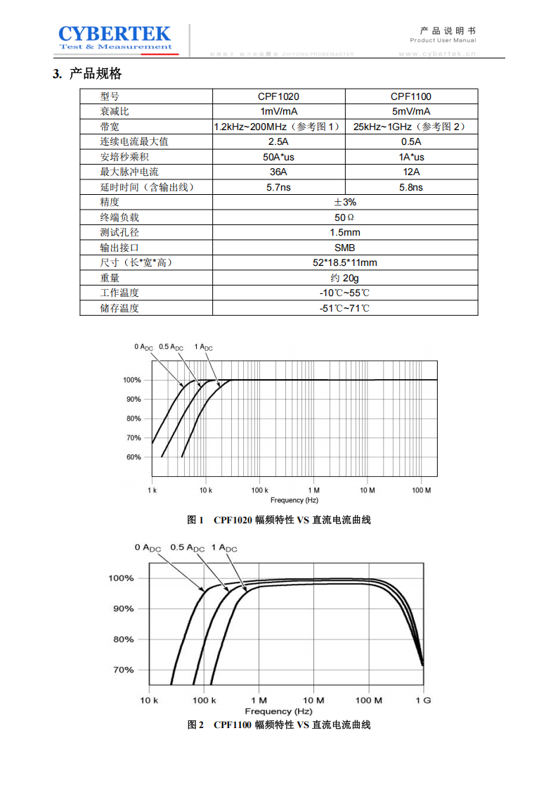 CPF1020/CPF1100 电流探头一种变压器型无源高频交流电流探头: