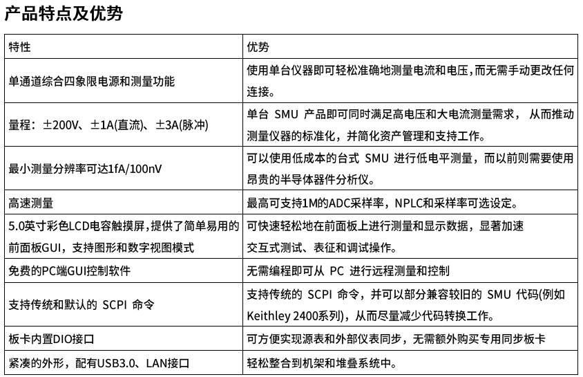 联讯仪器S2035H以适中的价格提供优异的性能。它拥有宽泛的电压源(±200V)和电流源(±1A直流和±3A脉冲)功能,出色的精度,6位半的显示(更低1fA/100nV显示分辨率)以及卓越的彩色LCD图形用户界面(GUI)。支持传统的SMU SCPI命令,让测试代码的迁移变得轻松快捷。SMU可以集成到生产测试系统中使用,上述这些功能将会提高系统的测试效率并降低拥本。