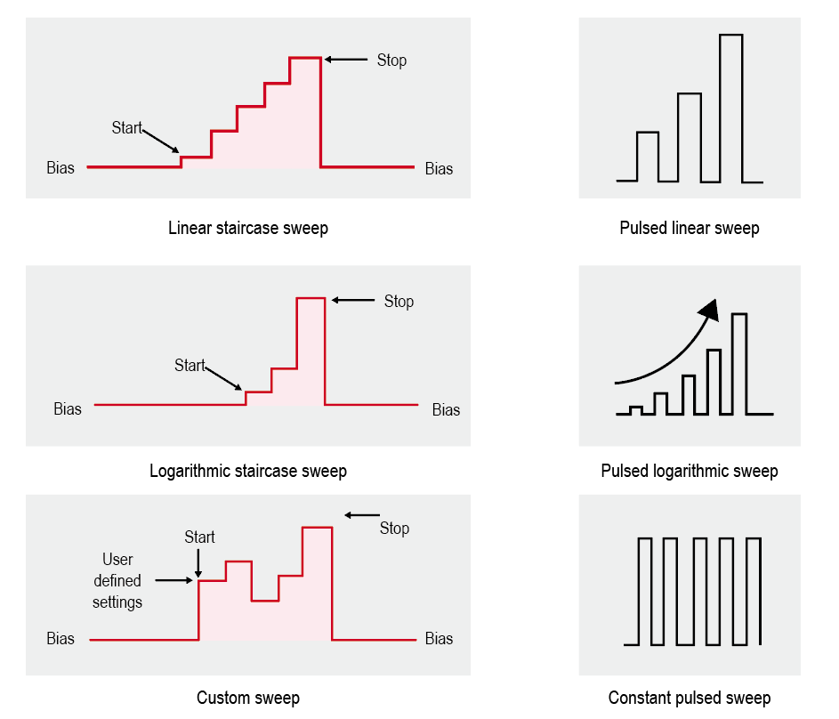 IT2800系列SMU具备标准和列表LIST扫描功能。标准SWEEP模式下,支持线性和对数模式,单次和双次扫描功能以及恒定和脉冲扫描功能。列表LIST扫描功能可以有效地执行任意波形输出,在表征响应随应用电压或电流而变化的测试中非常有用,用户可以使用Excel导入或面板编辑的方式,生成一个任意形状的扫描曲线,最多可以导入99999点数据,是U-I和I-U特性测试的理想选择。