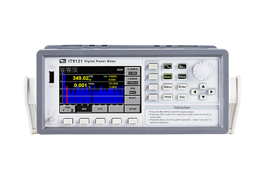 IT9100系列功率分析仪提供1000Vrms和50Arms的更大输入,以及100KHz的测量带宽,可以方便地进行电压、电流、功率、频 率、谐波等参数的量测。标配有USB、RS232和以太网通信接口,您可以通过这些接口实现对IT9100系列功率分析仪的远程控 制,同时您还可以利用USB外围设备接口,直接将量测参数保存到外部储存介质中。IT9100系列功率分析仪具有0.1%的电压、 电流精度,同时还具有丰富的有功功率积分功能。广泛应用于电机、家用电器、UPS、光伏风电、充电桩等测试领域。