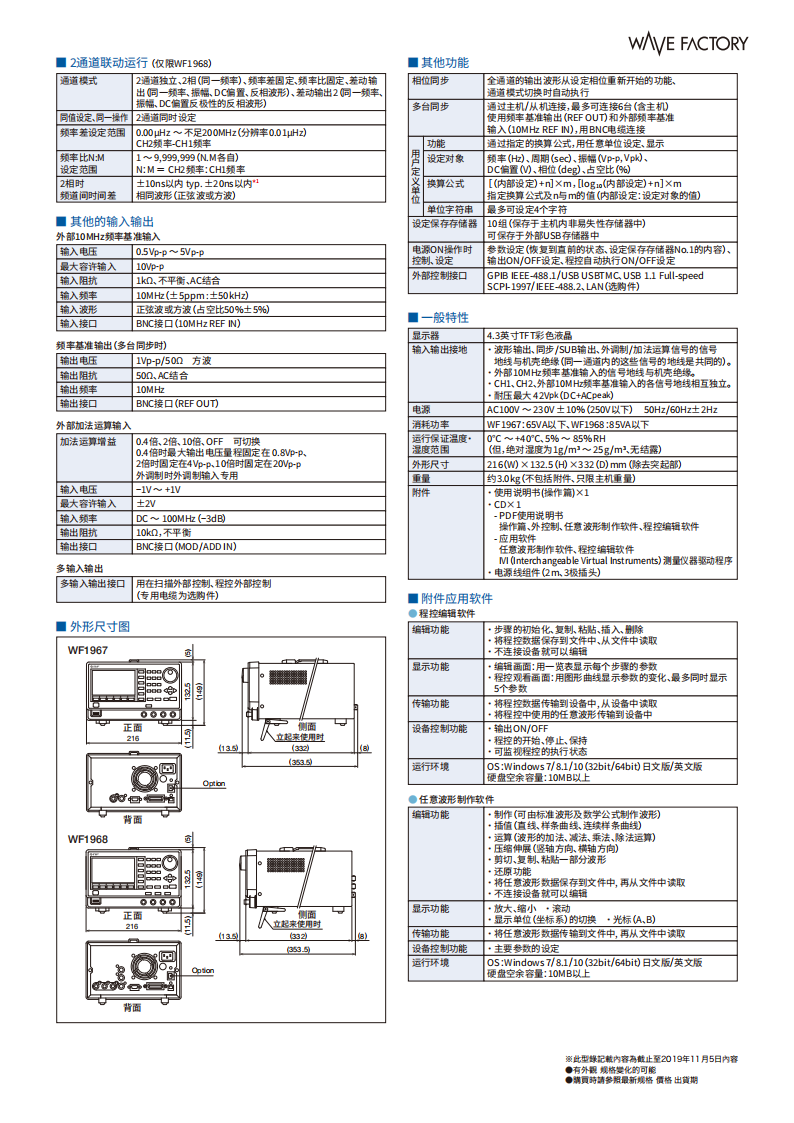 | 消耗功率 | WF1967:65VA以下、WF1968:85VA以下 |