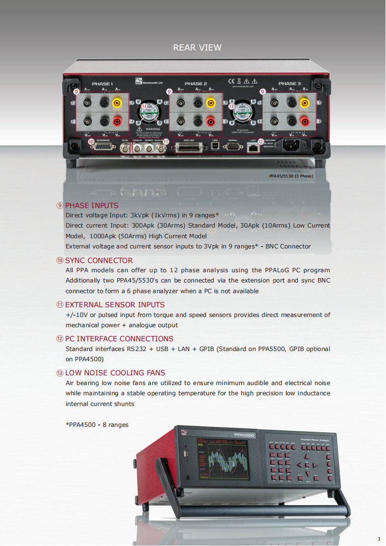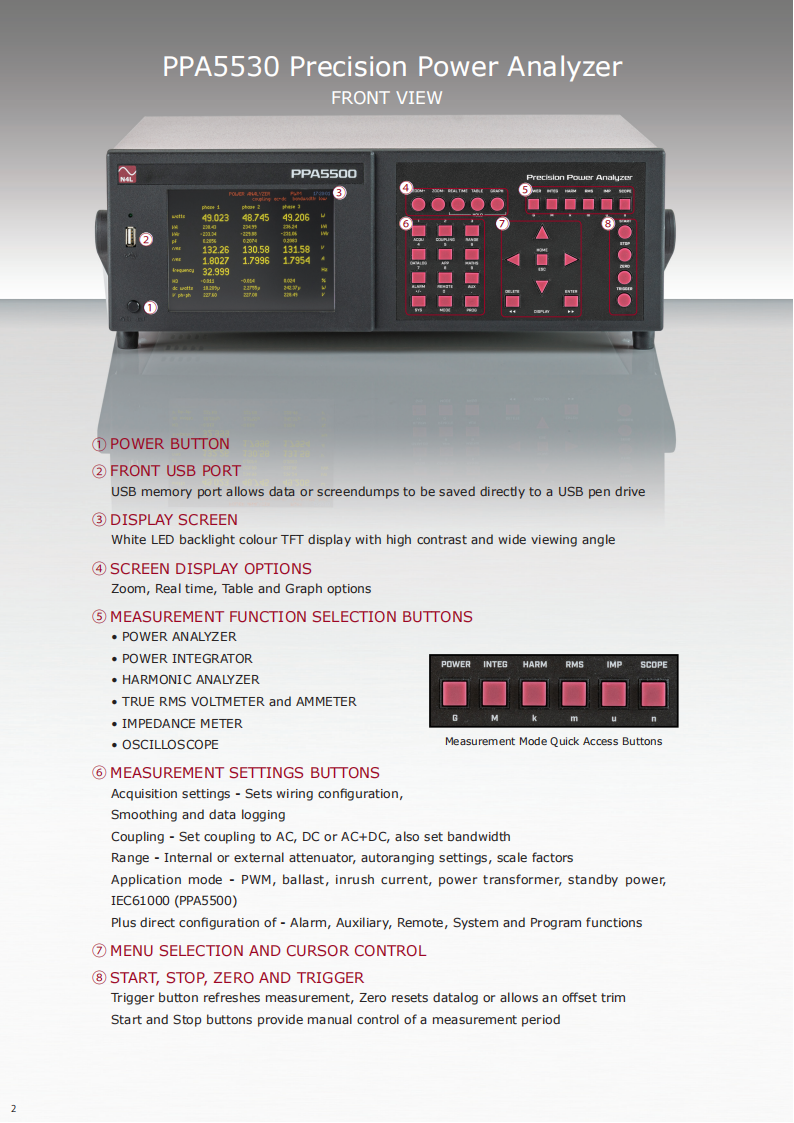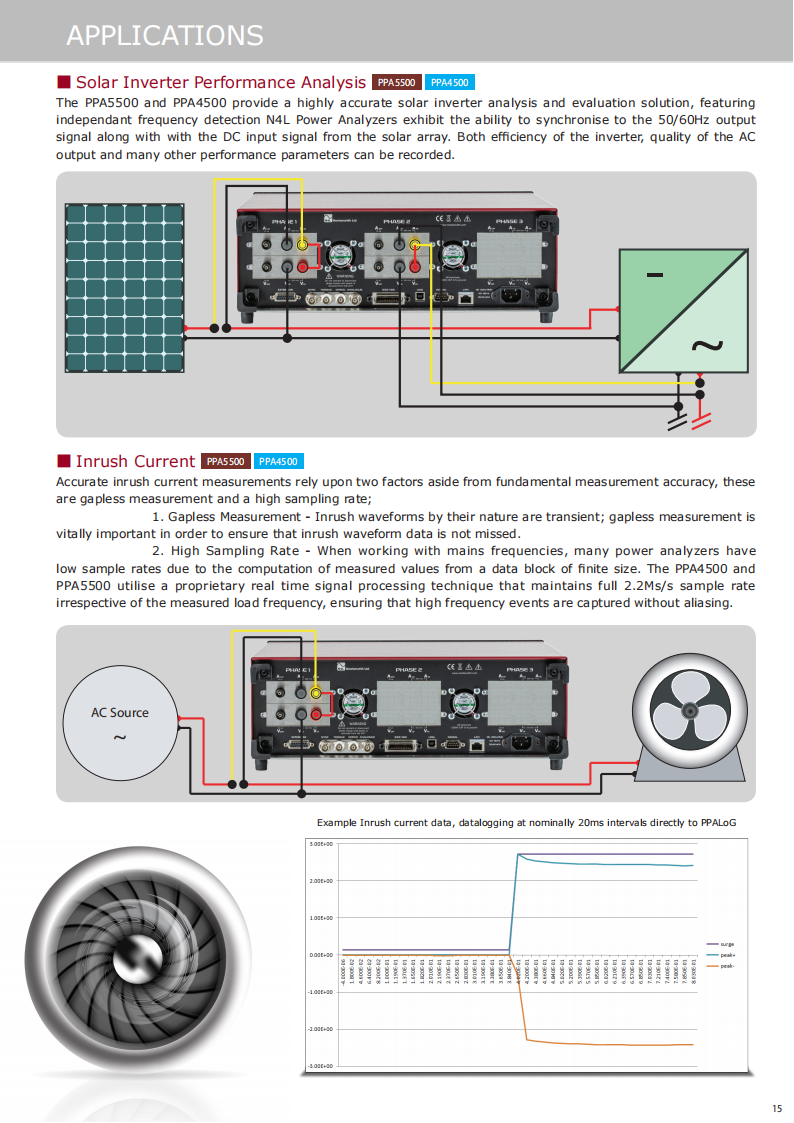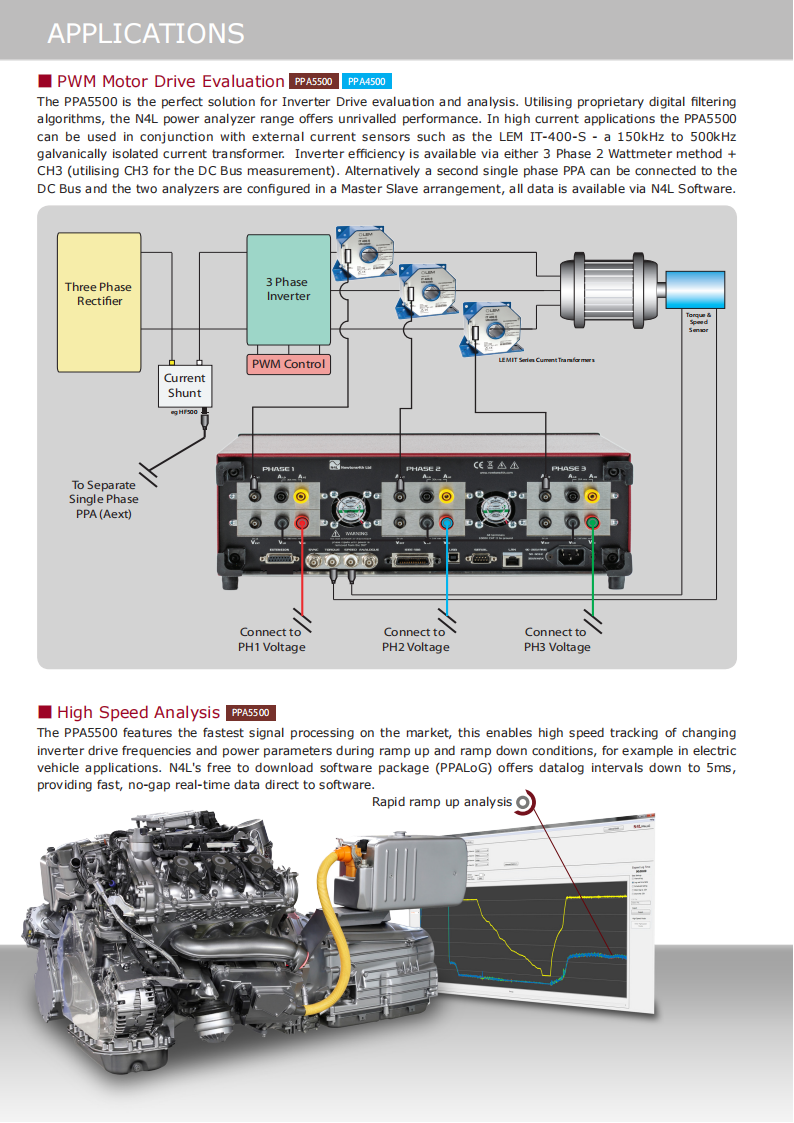 The PPA4520 and PPA5520 units offer unrivalled dynamic range which enables the user to comply with IEC62301 and Energy Star testing standards. Utilising"Standby Power Mode" the PPA employs proprietary standby power signal processing algorithms to provide accurate no gap analysis of high crest factor (CF)signals, importantly the entire N4L power analyzer range benefit from a guaranteed accuracy specification up to a crest factor of 20.