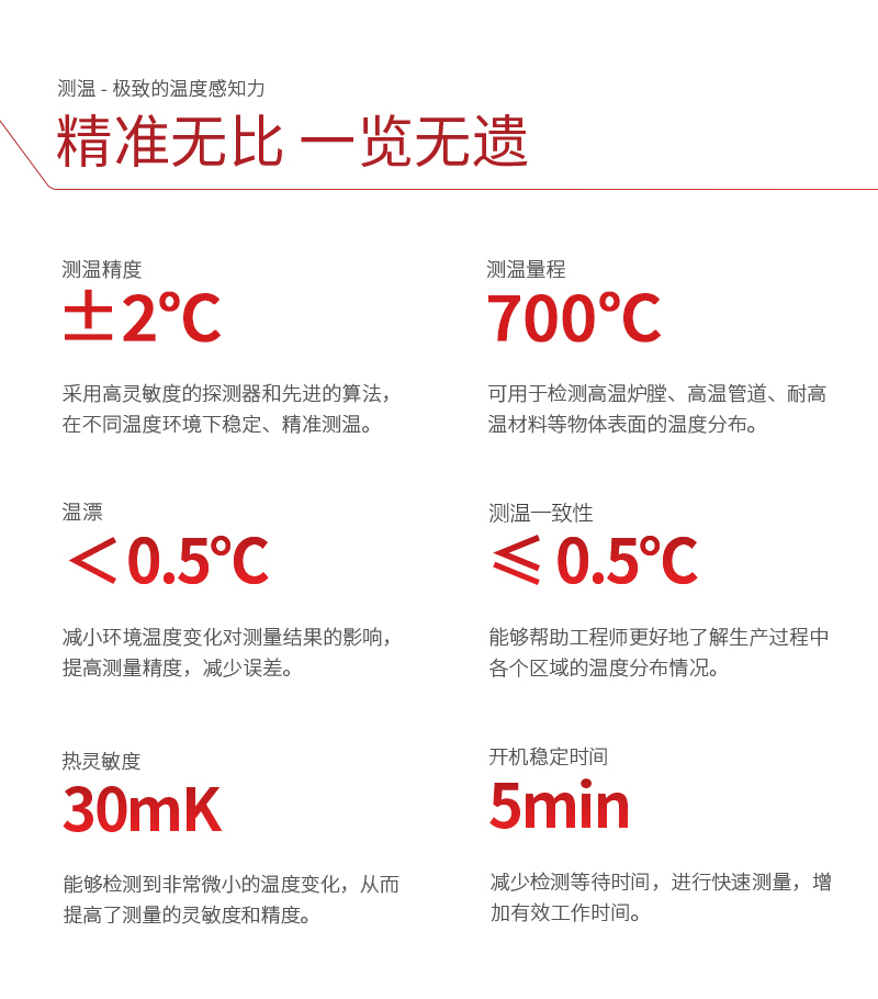 | 全局测温修正 | 支持发射率、环境温度、反射温度、相对湿度、测温距离、红外窗口(温度和透过率)修正 |