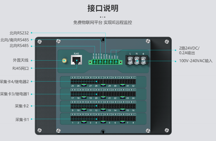 | 继电器 | 8~16路常开继电器220VAC/3A |