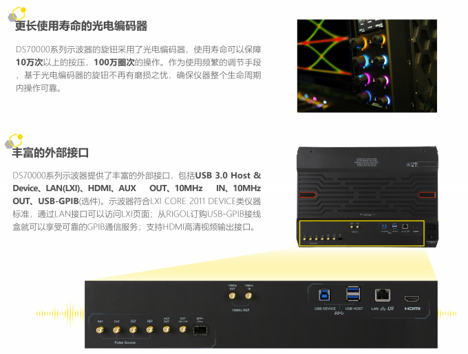 旋钮采用光电编码器,使用寿命可以保障 10 万次以上的按压,100 万圈次的旋转操作,使用寿命大幅度 提升