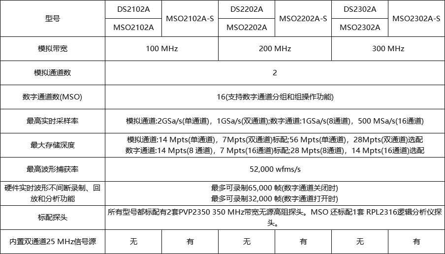 模拟通道标配存储深度达14 Mpts,选配达56 Mpts;