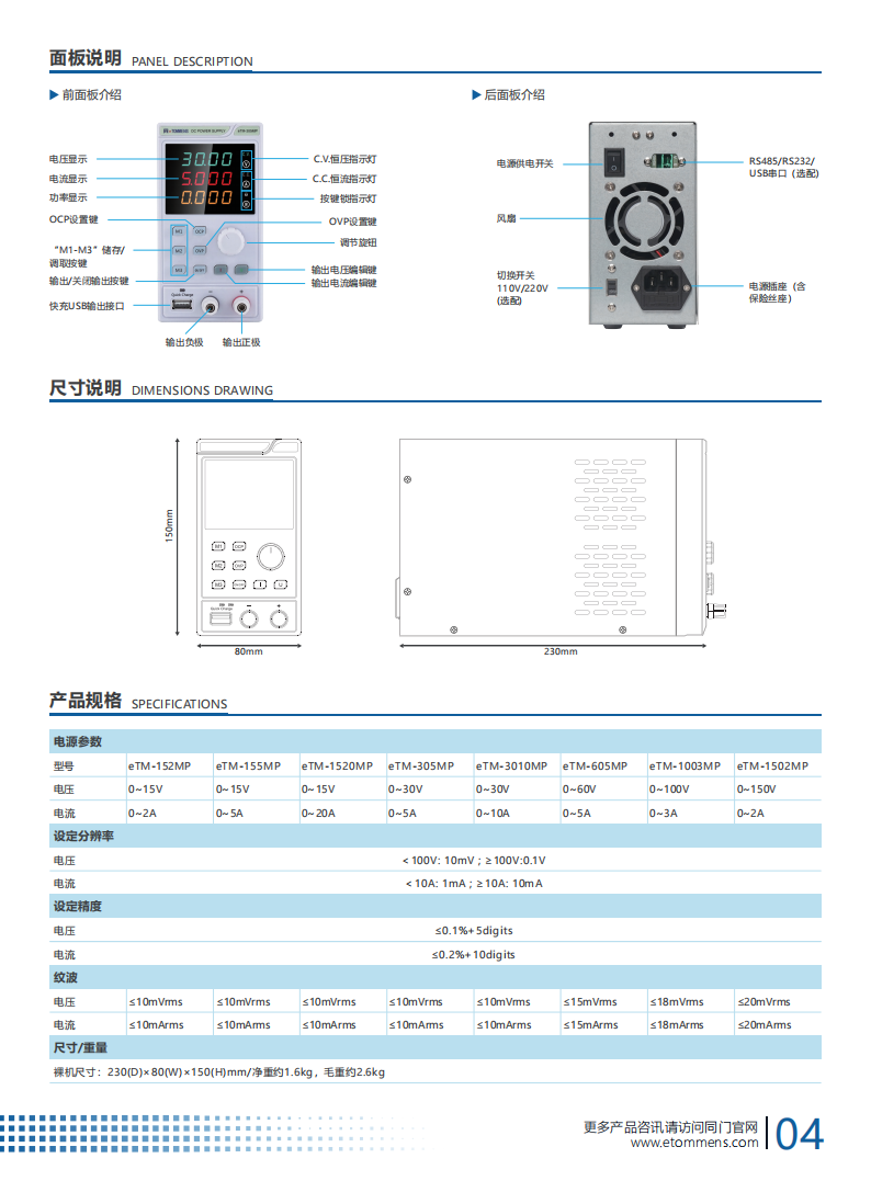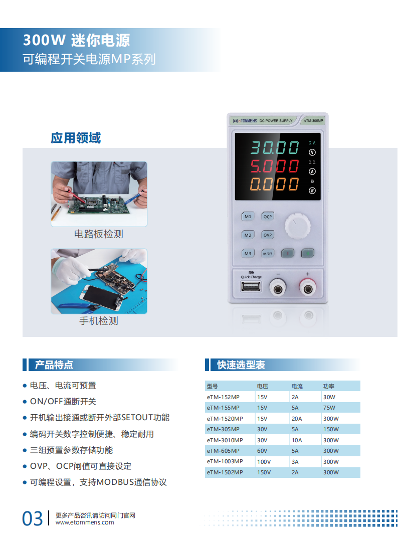 300W 迷你电源可编程开关电源 MP 系列优势显著。它功率密度高,体积小巧却能稳定输出 300W,节省空间。具备精准可编程特性,可依需求灵活调控电压电流。还设有完善保护机制,像过压、过流、过热保护等,全方位守护设备,保障运行安全与稳定 。