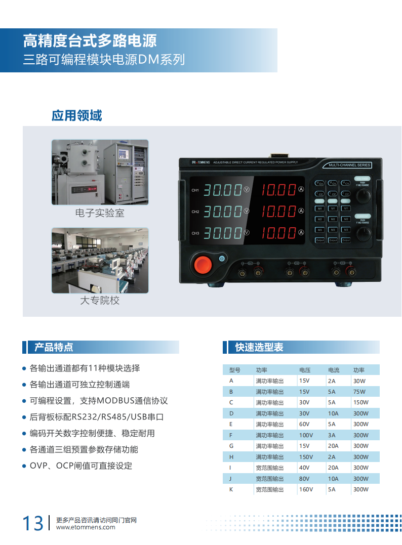 高精度台式多路电源DM系列,堪称电源领域的实力担当。它具备三路可编程模块,能按需灵活设定输出,满足多样用电需求。电压、电流调节精度极高,为对供电稳定性要求严苛的设备提供坚实保障。内置智能芯片,可自动监测与调控,搭配丰富通信接口,实现便捷远程操控,尽显卓越性能 。