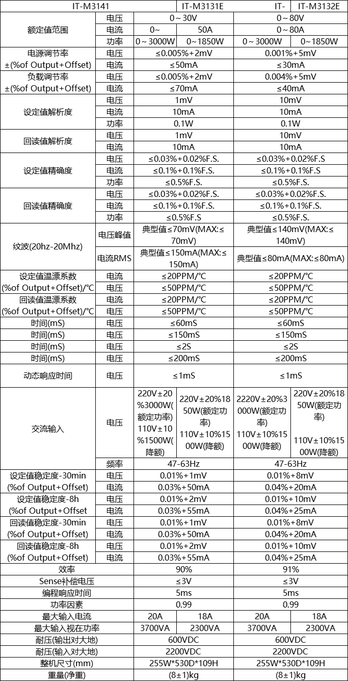 不仅如此,IT-M3140系列是集高稳定性、高动态响应速度(<1ms)、高阶保护功能以及LIST可编程功能于一体的直流电源产品,全系列标配USB/LAN通讯接口,可搭配ITECH免费的PV3140软件轻松实现远程控制及数据存储,易于集成。可广泛应用于半导体器件ATE系统台架、老化集成、检测认证、电源模块及汽车电子等领域。