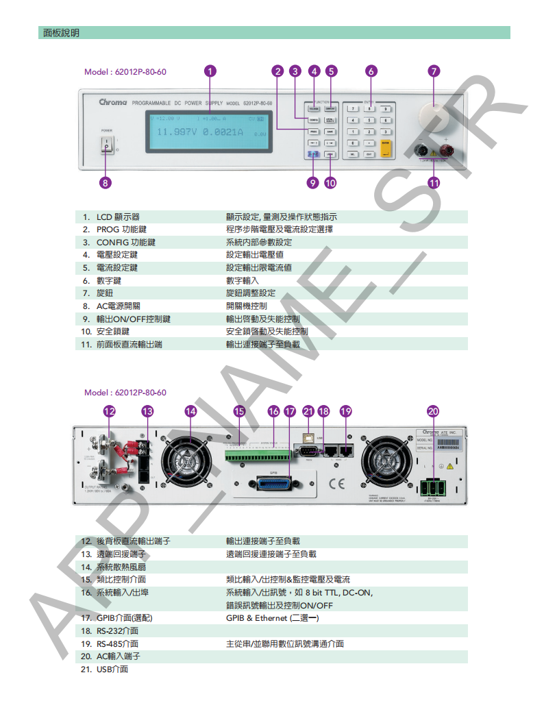 具有 10 组可编程控制及 100 个步骤设定电压 / 电流 / 8 位 TTL 信号输出
