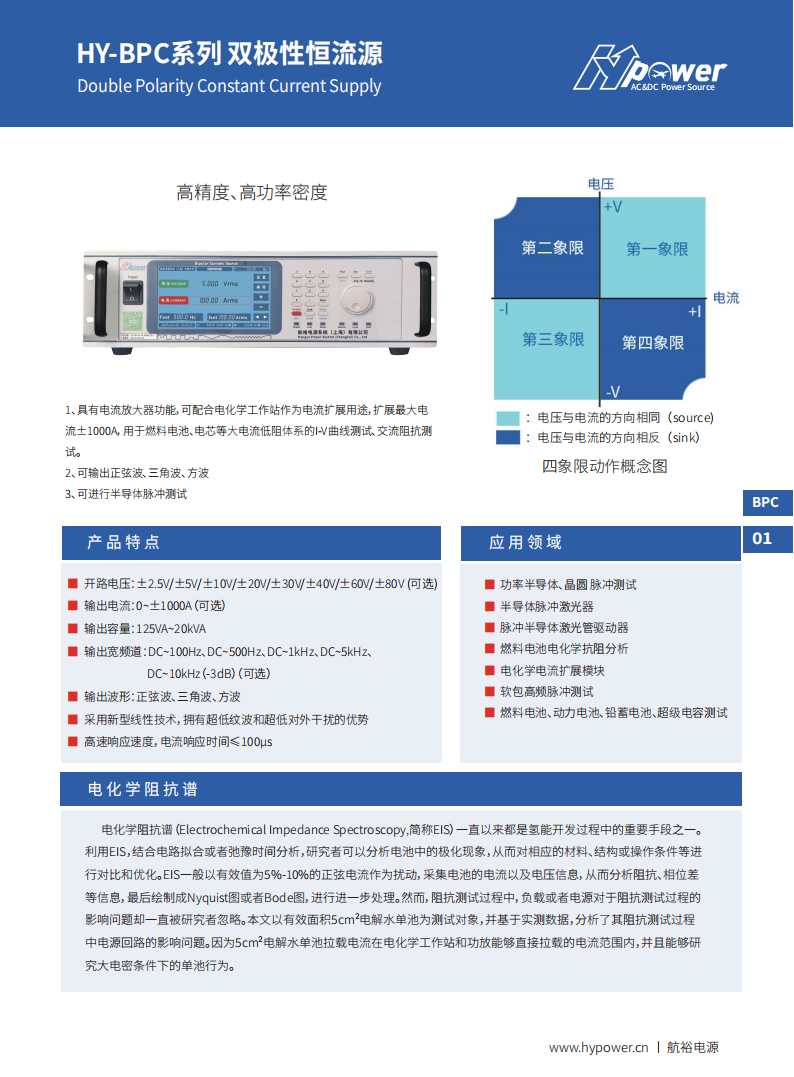 1、具有电流放大器功能,可配合电化学工作站作为电流扩展用途,扩展更大电流±1000A,用于燃料电池、电芯等大电流低阻体系的I-V曲线测试、交流阻抗测试。2、可输出正弦波、三角波、方波3、可进行半导体脉冲测试。